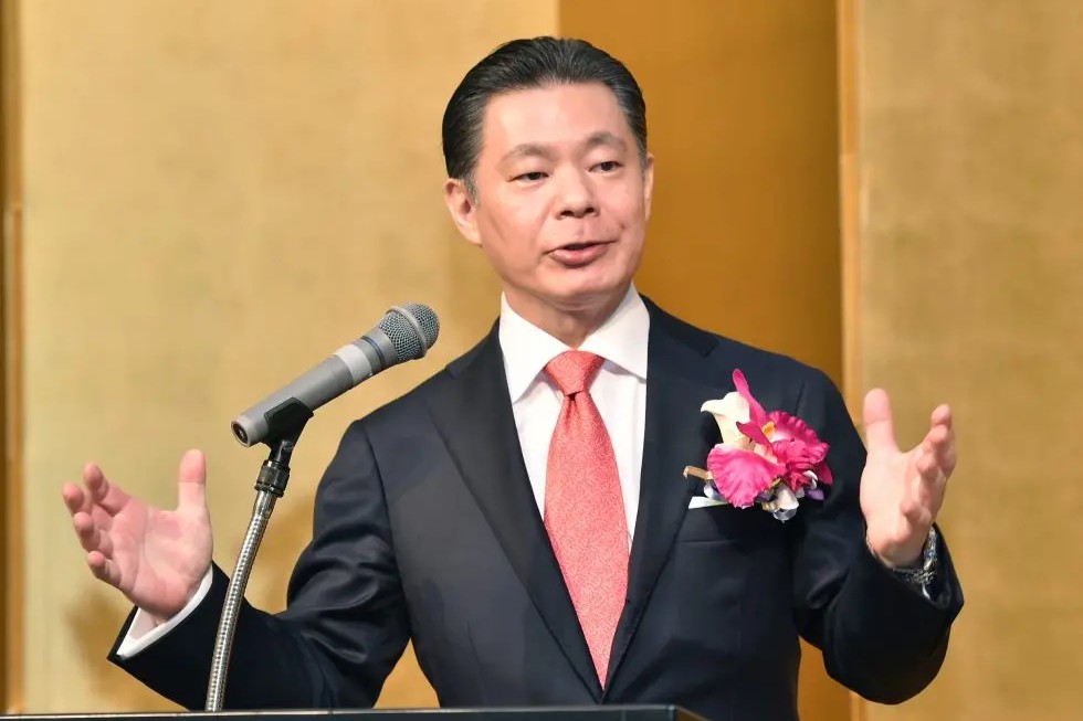 Takuji Yanagimoto delivered a guest greeting and was the former secretary to Yasuhiro Nakasone.